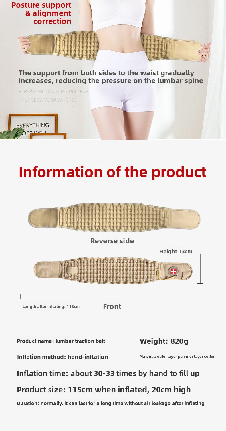 Traction Function: Provides vertical and continuous traction to protect and reduce stress on the lumbar spine.
