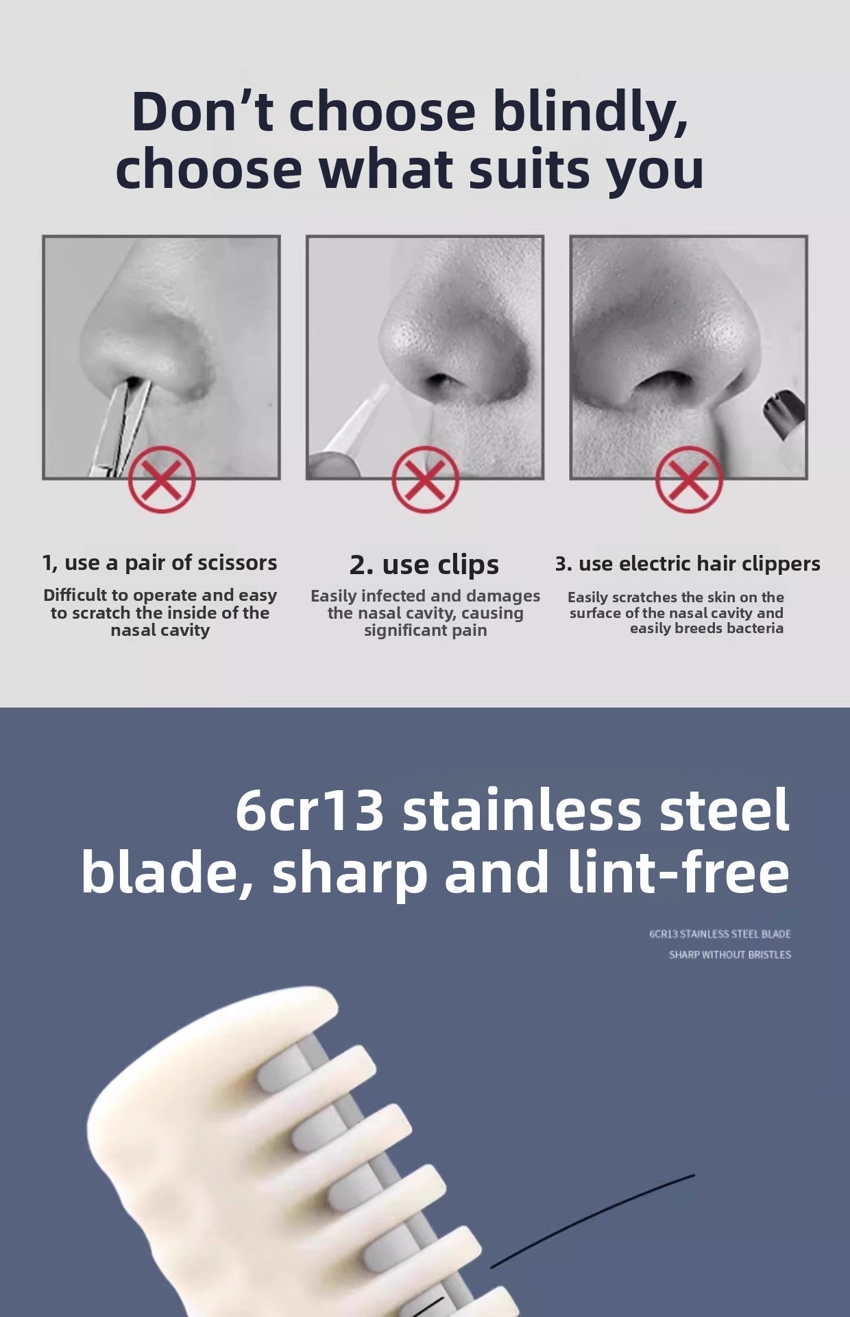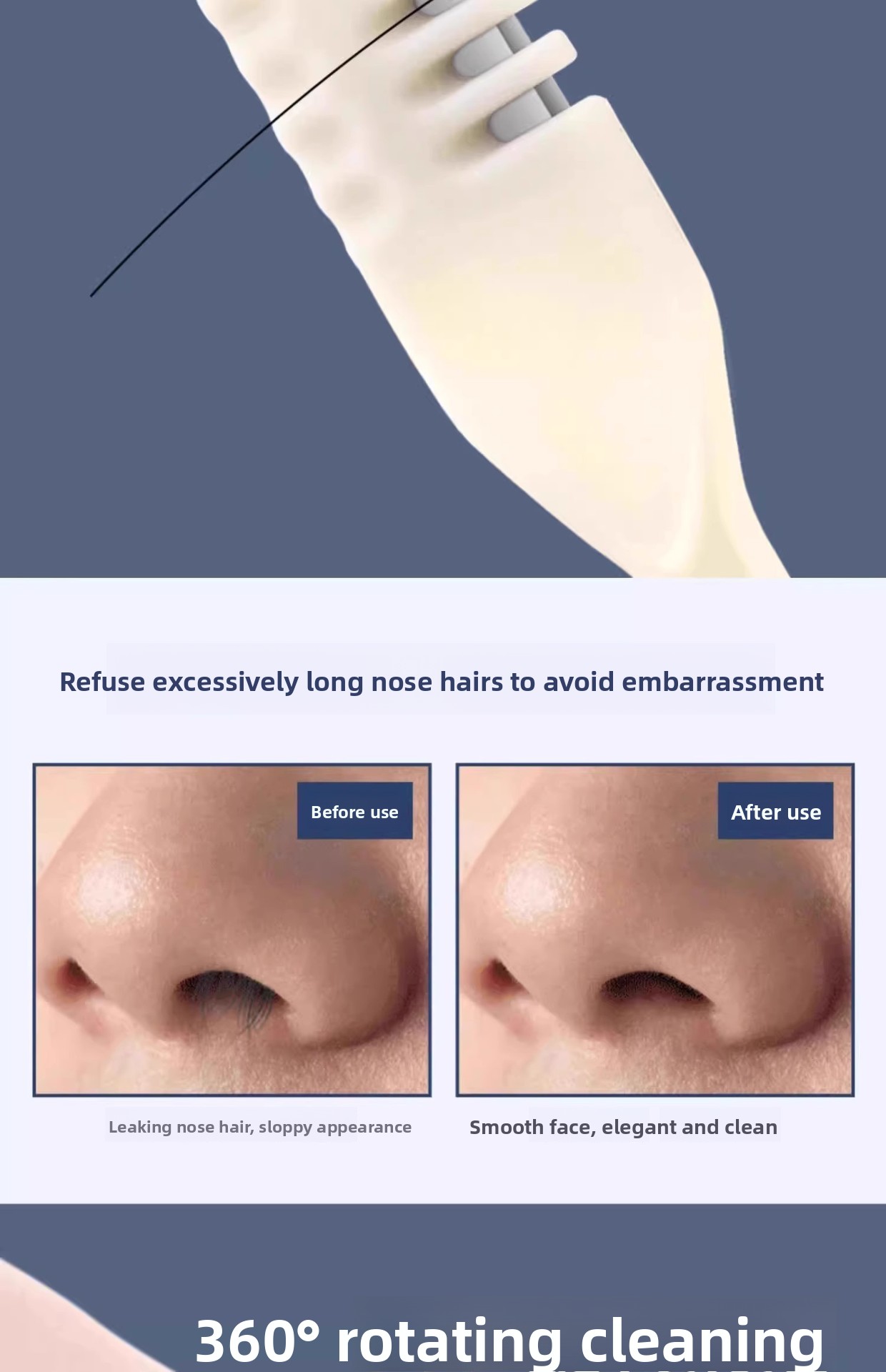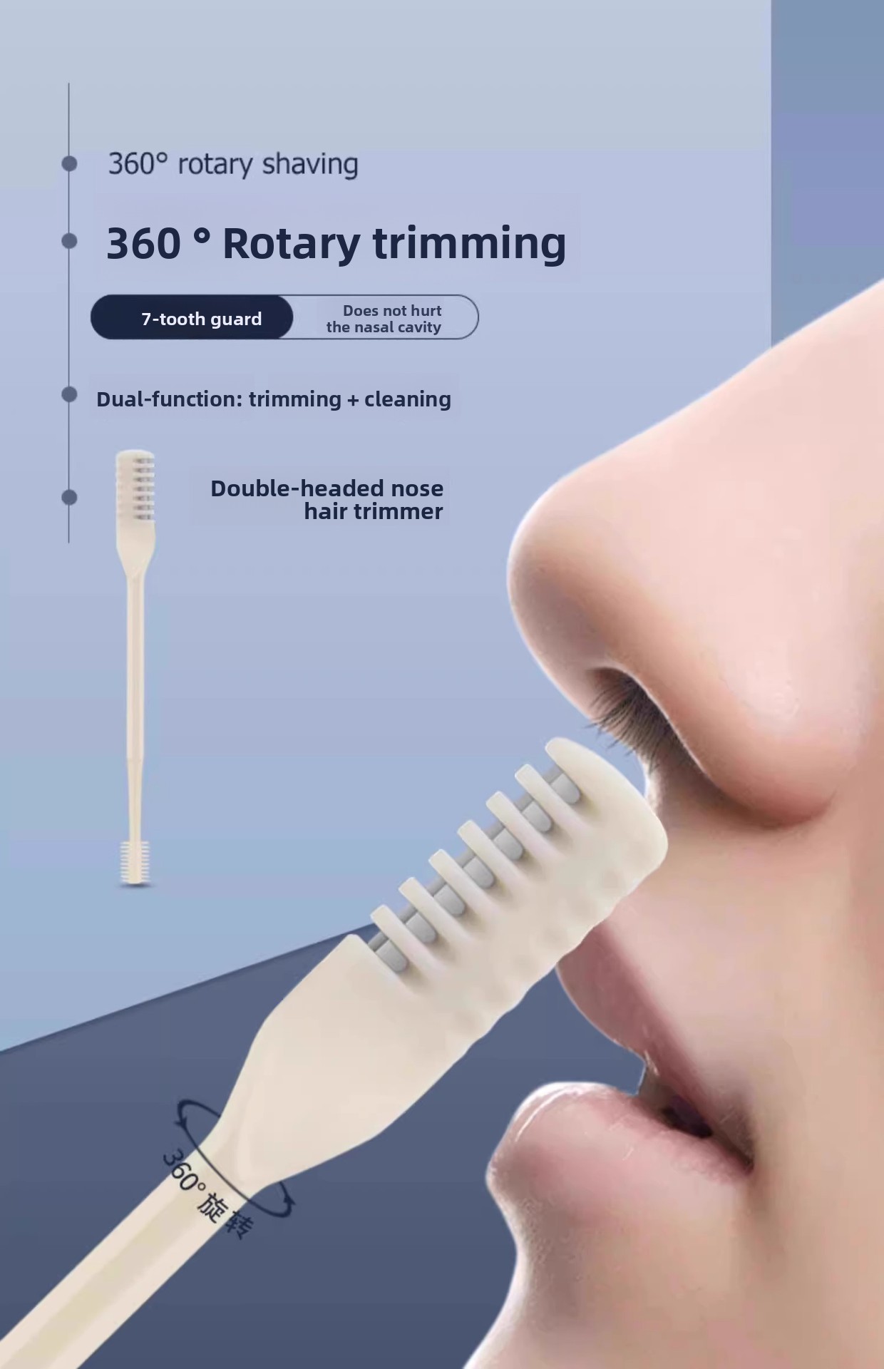 Dual-head design: Efficiently trims nose hair from different angles