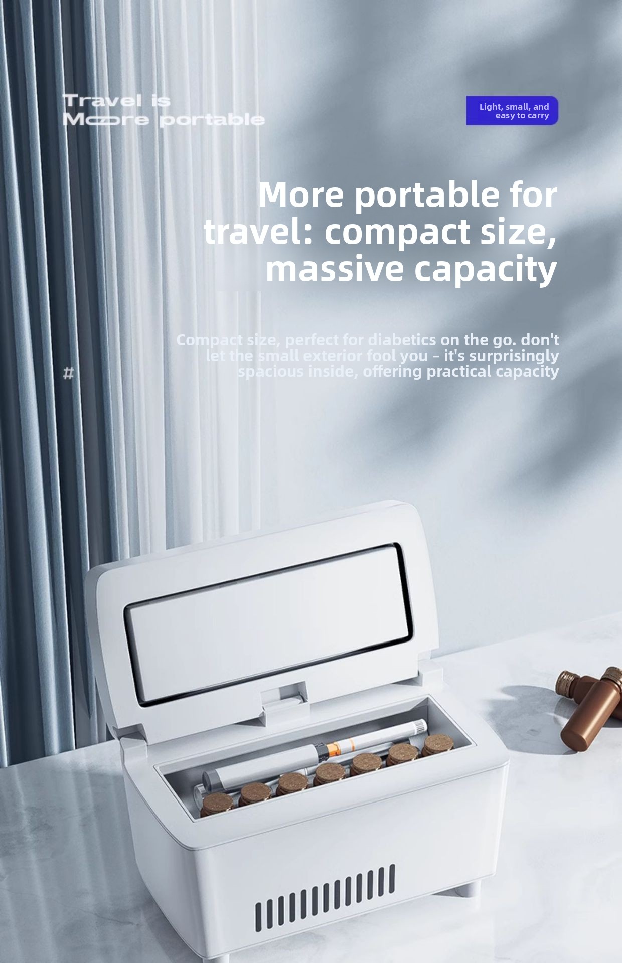 Portable Cooling: Compact insulin refrigeration box for medication storage on-the-go.